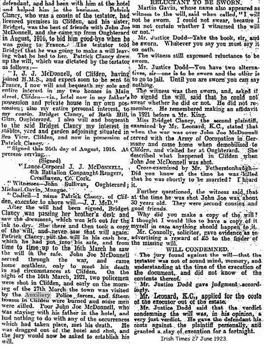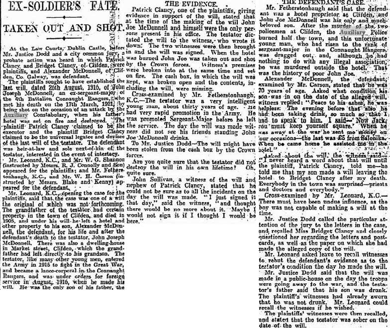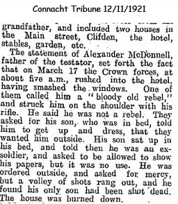 John Joe McDonnell lost his life during the reprisal burnings. The only thing that both sides agree on is that he was shot by Crown forces
