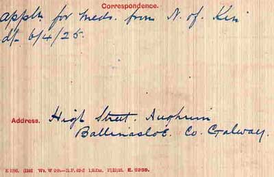 1920 Oct 15. Discharged from British Army. He received a 12/- per week disability pension for his wounds. His service record shows that he wanted to take up a job with Glasgow Police, but this does not appear to have materialised, and he reappears in the RIC in Galway, with the RIC record showing that he joined RIC in 1920.