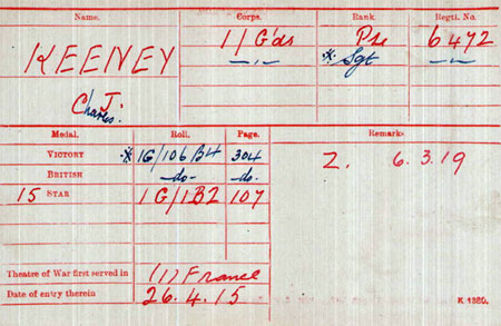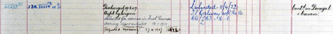 1920 Feb 25 Transfer of Sgt C J Keeney from Belfast City to Galway W.R