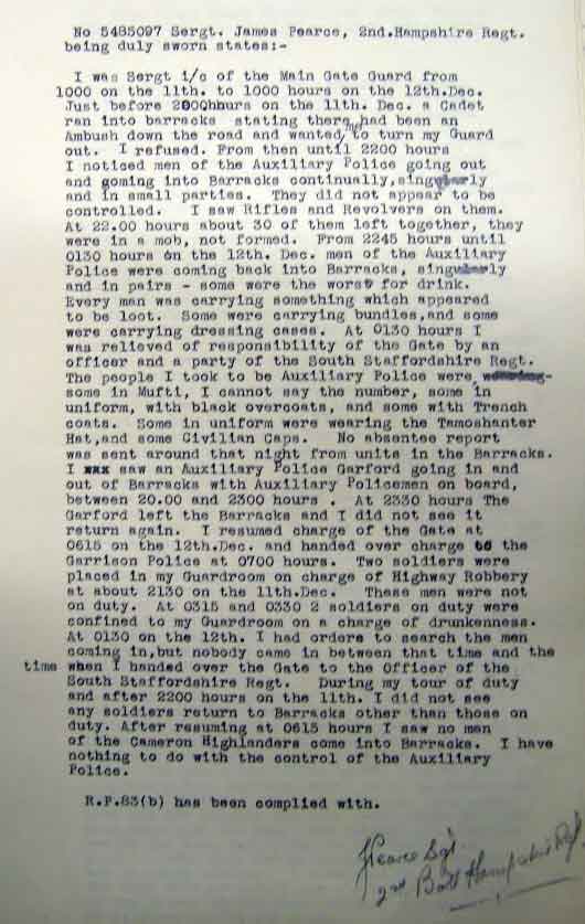 Sgt J Pearce, 2nd Hants RegtEvidence to the Strickland Enquiry
