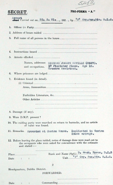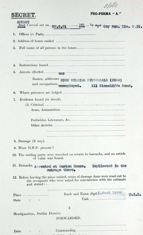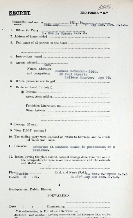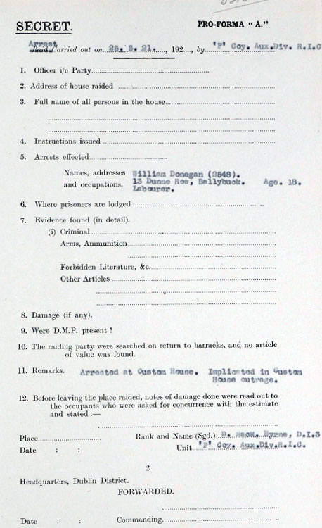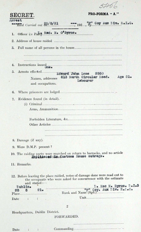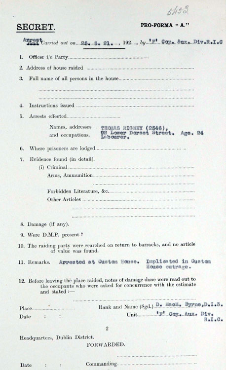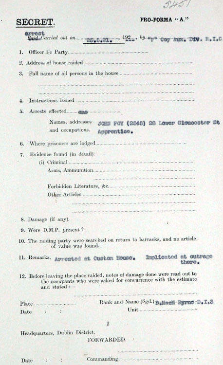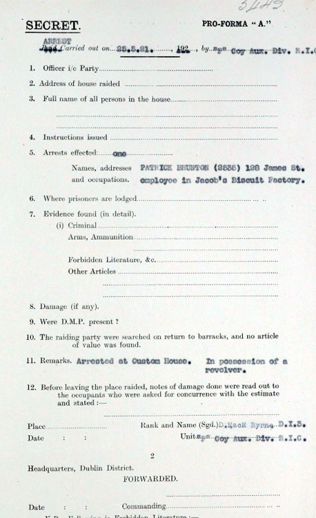 DI3 DMcM O'Byrne - F Coy Intelligence Officer - filled in the forms for those arrested. They were for