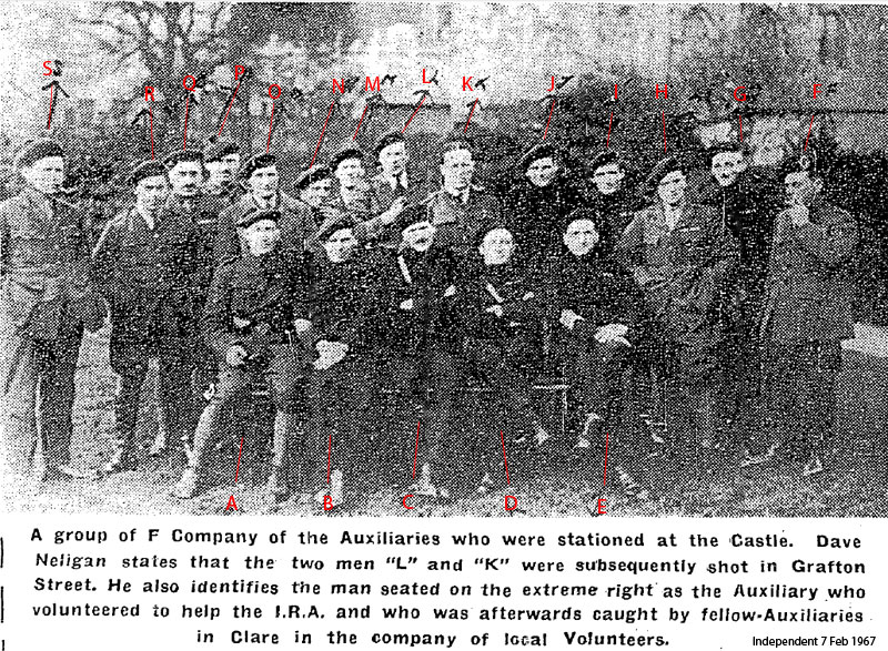 Sturgis's "Last Days of Dublin Castle" records "The Dublin Corps Elite of the IRA have celebrated he release of de Valera by murdering in Grafton Street this evening two Auxiliaries from F Coy quartered here - both out shopping unarmed and in mufti"