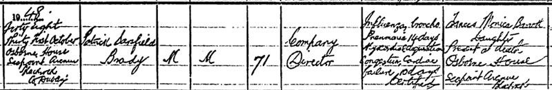 1921 Mar 19. Ministers were asked whether Mr. Brady's house had been raided by the Auxiliaries, whether they had threatened him, and whether he had left the country on the advice of the right honourable gentleman's responsible officers. Replying for Sir Hamar Greenwood, Mr. Henry could not deny this statement, but professed ignorance of the whereabouts of Mr. Brady, who had obtained leave of absence and was " broken down in nerves."