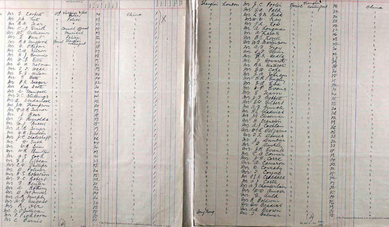 1914 Dec 15. Arrives in London on SS Suwa Maru from Shanghai, part of a group of young men who comprised the "Shanghai contingent " in the manifest. There is a book about them. I contacted the writer of the book, got an auto response saying he would get back to me, but he never bother - he is an academic!. They appear to be recruits for the British Army, and they marched as a column to the Central Recruiting Office in London when they arrived, and most of them joined one of two regiments: the 10th Battalion of the Yorkshire Regiment, or King Edwards Horse.