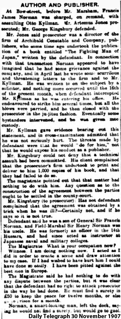 1907 Dec 30 Report of an altercation with the publisher of his book