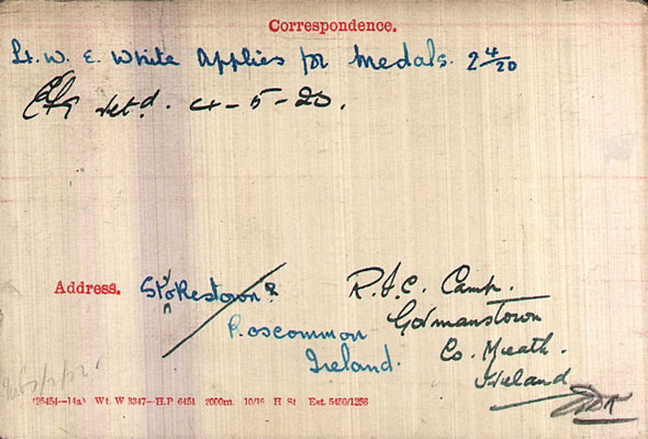1918 Jun 29.Lieutenant W E White, M C, son of Mrs White, Strokestown, reported missing since 27th May, has written to his mother that he is a prisoner of war in Germany.
