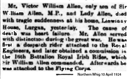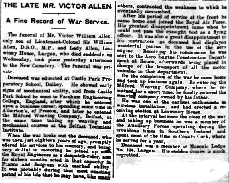 1896 Aug 24. Born Lurgan, Armagh, Ireland. The family had owned Linwinny House, Lurgan for some time.