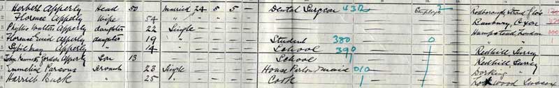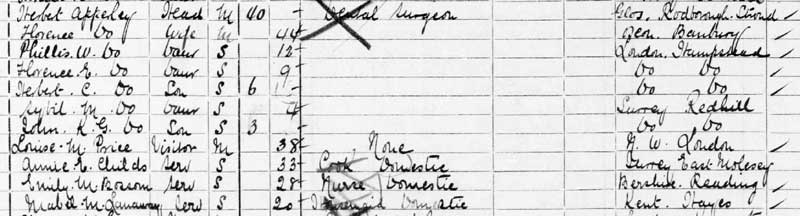 1911 census at North Bar, Millway, Reigate, Surrey