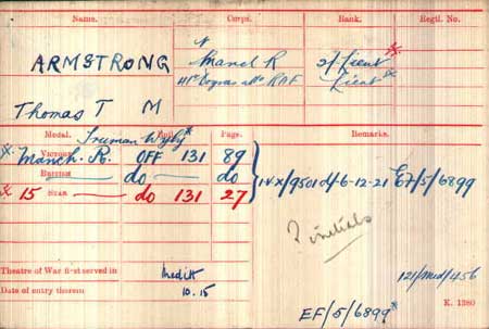 1917 Oct 22. Manch. R. The undermentioned temp. Lts. to be temp. Lts. (attd.), retaining present seniority : — T. T. W. Armstrong, from a Serv. Bn.