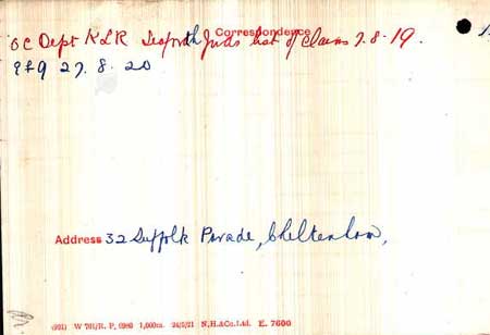 1920 Dec 1 Arrives back in UK from Canada. His profession is "soldier" of 32 Suffolk Parade, Cheltenham
