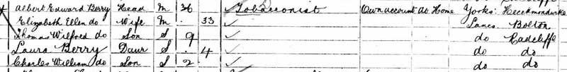 1901 census at 5 Sion Street, Radcliffe, Lancashire, England