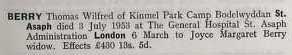 1918 Nov 29 Gazetted MC. Lt. Thomas Wilfred Berry, R.F.A., S.R., attd. C/83rd Bde. For conspicuous gallantry and devotion to duty as forward observation officer during an attack. For sixteen hours he maintained communication under heavy fire, and sent back most valuable information