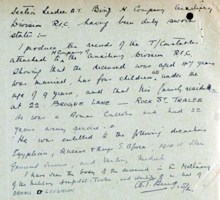1921 Apr 22. And again at D O'Loughlin Inquest