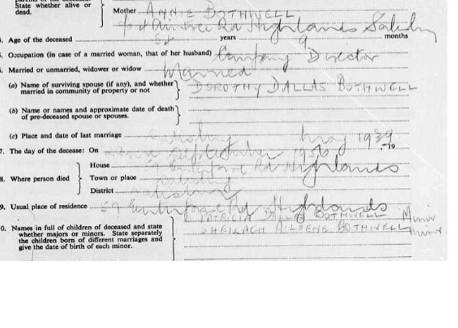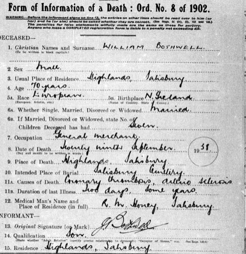 1938 Oct 30 Signs his father's death cert in Salisbury , Rhodesia