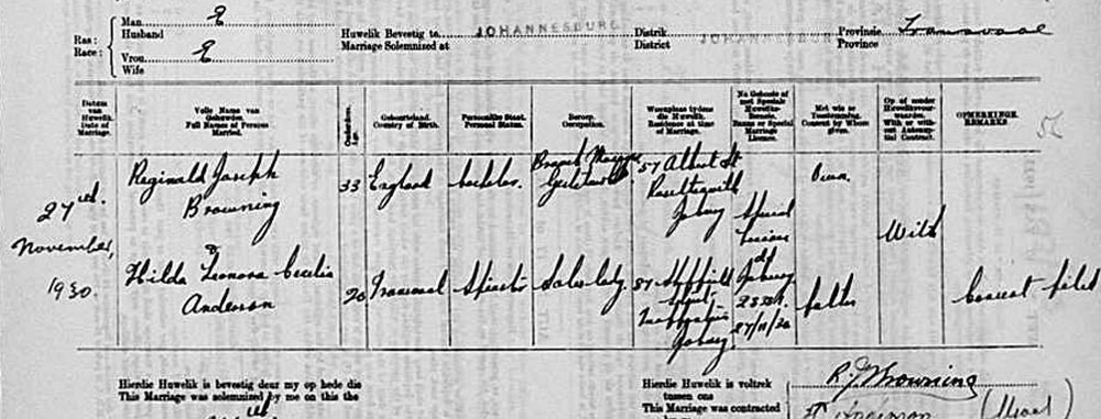 1930 married in South Africa