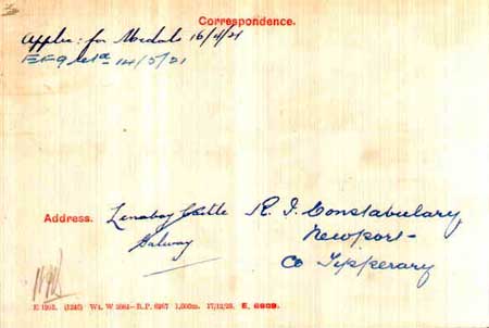 1921 Jun 24. Permanent Cadet. DI3 in RIC at Newport. Co Tipperary