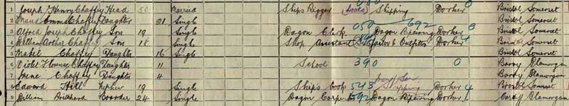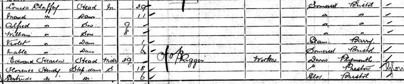 1901 census. The father is a boarder in Bristol, but without the children. The mother and children are at Castleland , St Barry (MIC address)