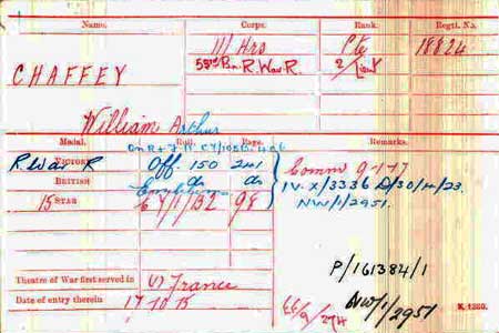 1918 Nov 30. R. War. R. The undermentioned temp. 2nd Lts. to be temp. Lts. : — W. A. Chaffey, with precedence next above S. P. Crew