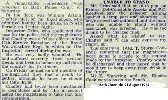1937 Drunk in Bath. He appeared in court on drunk charges many times
