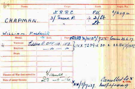 1917 Jun 27. The undermentioned, from Officers Cadet Units, to be 2nd Lts. : — Essex Regt - William Frederick Chapman