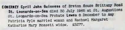 1896 Oct 13 Born Ennis, Clare. His father Patrick Pierre Conerney was a Church of Ireland Clergyman