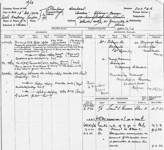1926 Jul 4. The undermentioned Flying Officers are transferred to the Reserve, Class A:—. Stanley Herbert COOPER. (Dove is also on that list)