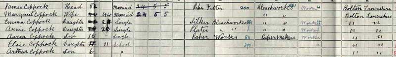 1911 census at 32 Ashton Street, Little Lever, Bolton