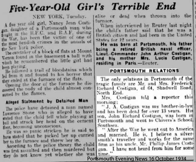 1934 Oct 12. His 5 year old daughter was murdered in New York. Stone was sentenced to 50 years to Life for the murder