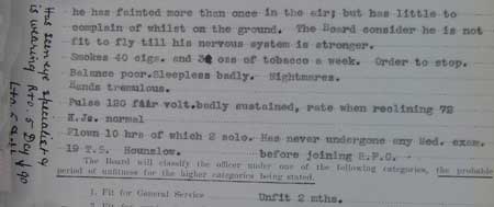 1918 Jan 4. Medical Board passes him permanently unfit as either pilot or observer. At this point he has 2 hours 10 mins solo on his log