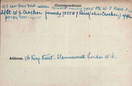 Enlists under alias W J Reece. There are 3 men whom it could be, and none appears to have a link to Wilts, nor to the Hammersmith address on NIC