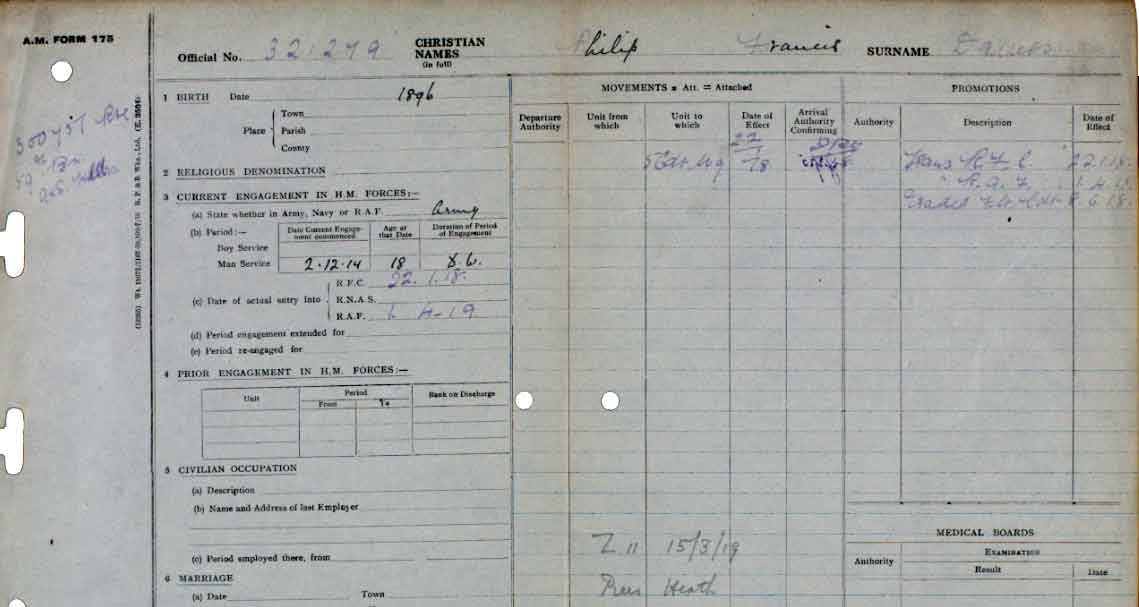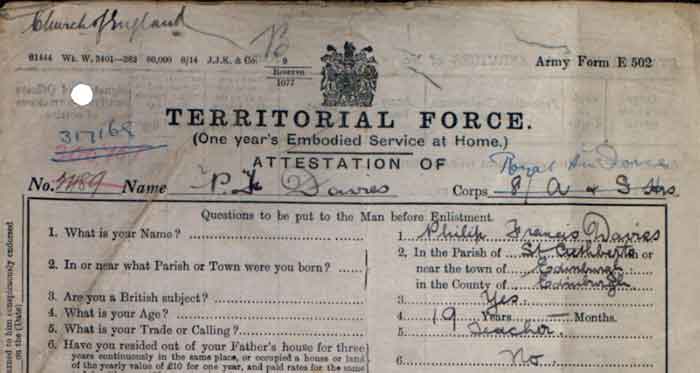 1939 Feb 15. The undermentioned are granted commissions in the ranks stated with effect from 1st Sept. 1939 and with seniority of the dates stated, Flight Lt, :—2nd Lt. Philip Francis DAVIES (74861).