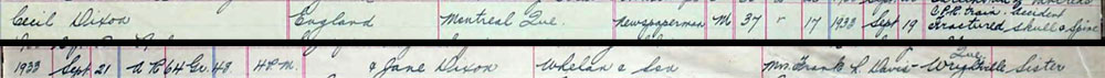 1933 Sep 21 died in train accident (note correct mother and sister) in Montreal Canada.