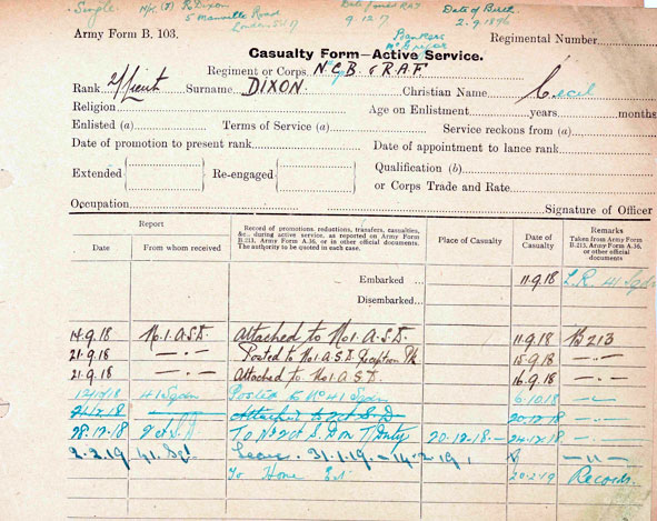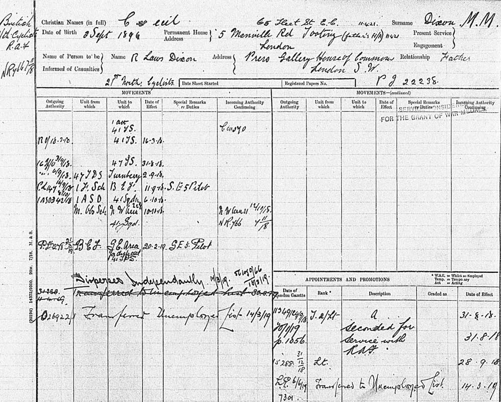 1918 Sep 28 Promoted Lt. C Dixon M.M