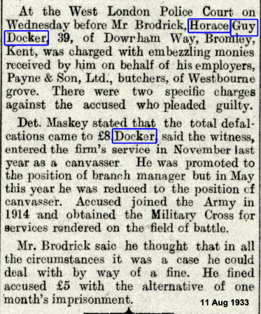 1939 Register. Living with brother Leslie M Docker at 104 Carlton Avenue West , Wembley. He is a General Manager, Wholesale Meat