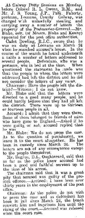 1921 Jan 8. RGA. Lt. J. Dowling, M.M., retires, receiving a gratuity.