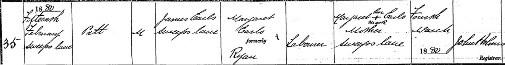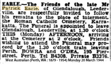 1880 Mar 17. Born Limerick. His father, James Earle, is a labourer. Protestant in RIC Register. The only birth I can find is this, but the date is wrong.