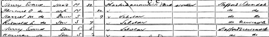 1910 May 28 Death of his father, Henry Evans at 38, Barracks Road, Newcastle under Lyme. Occupation given as Accountant. Cause of death - Tuberculosis.