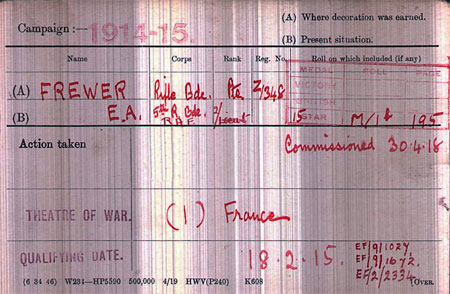 1918 Apr 19. Commissioned . Rif. Brig.— Edgar Arnold Frewer.