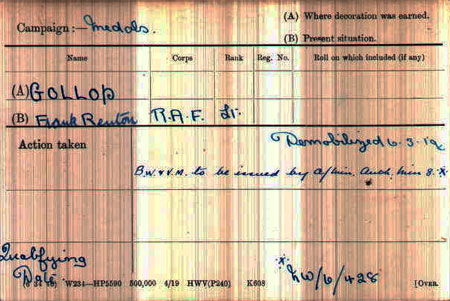 1916 Oct . Gollop transferred to the Royal Flying Corps as a student pilot.
