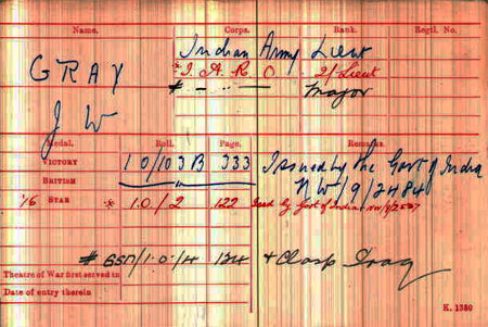 1918 Feb 1. 85th Burman Rifles . Lieut. J. W.Gray, M.C., I.A.R.O., attd., to be actg. Capt. (additional), from 29th Oct.1917 to-31st Jan. 1918 inclusive, and to retain his actg. rank while comdg. a Coy