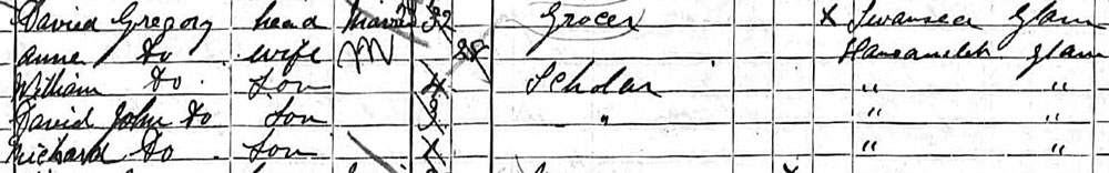 1911 Census at Birchgrove, Llansamlet (as on MIC)