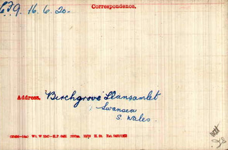 1889 Oct 7 Born Llansamlet, Swansea, Wales