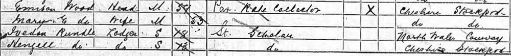1891 census he is a lodger in Cheadle, Stockport