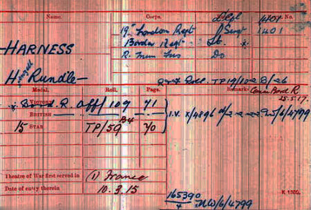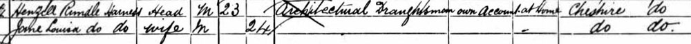 1877 Apr 18. Born Stockport, Cheshire. He is born Henzell Rundle. His mother's maiden name was Henzell. The Harness does not appear until after the 1891 census and before 1898 when he marries as Harness. There is a brother called Harness. His mother was Anna Louisa Henzell. His mother died in 1878 and his father in 1882.
