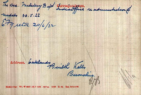 1922 Jan 13. Discharged on demobilisation of ADRIC
