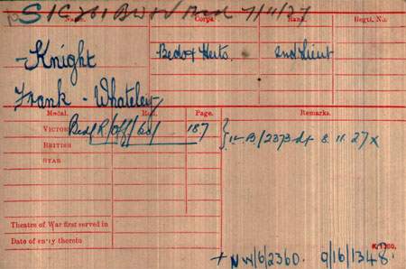 1918 Sep 12. The following Officers joined Battalion ...2/Lt F.WHATELY-KNIGHT. (1st Bat Bedfordshire Reg War Diary)