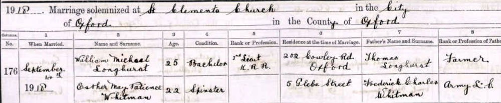 1918 Sep 14 Married in Oxford to Esther M P Whitman