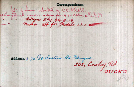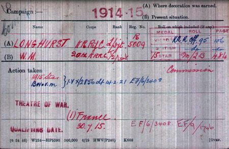 1918 May 31. Gazetted 2nd Lt in KRRC, William Longhurst
