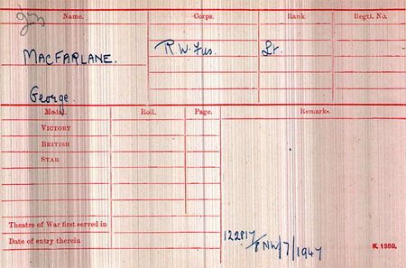 1918 Jun 16. R W Fus. Temp. Lt. G. Macfarlane, from Gen. List, to be temp. Lt. 16 June 1918, with seniority 15 May 1916.