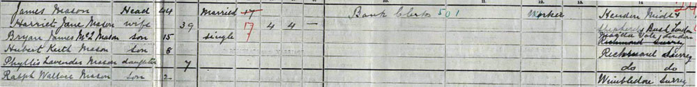 1911 census at 63 Kenilworth Avenue Wimbledon Park S W